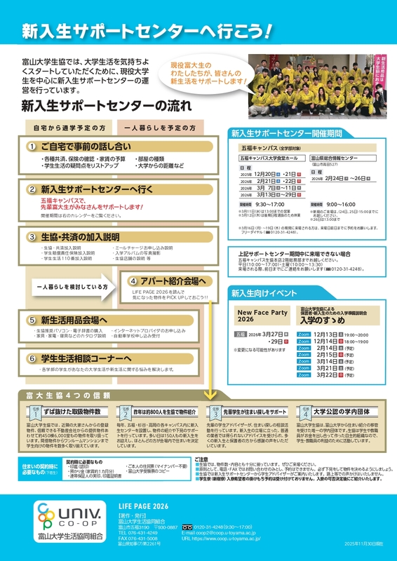 2026年度入学生向け「住まい紹介」(新入生サポートセンター)開催日程 (2025年12月23日)